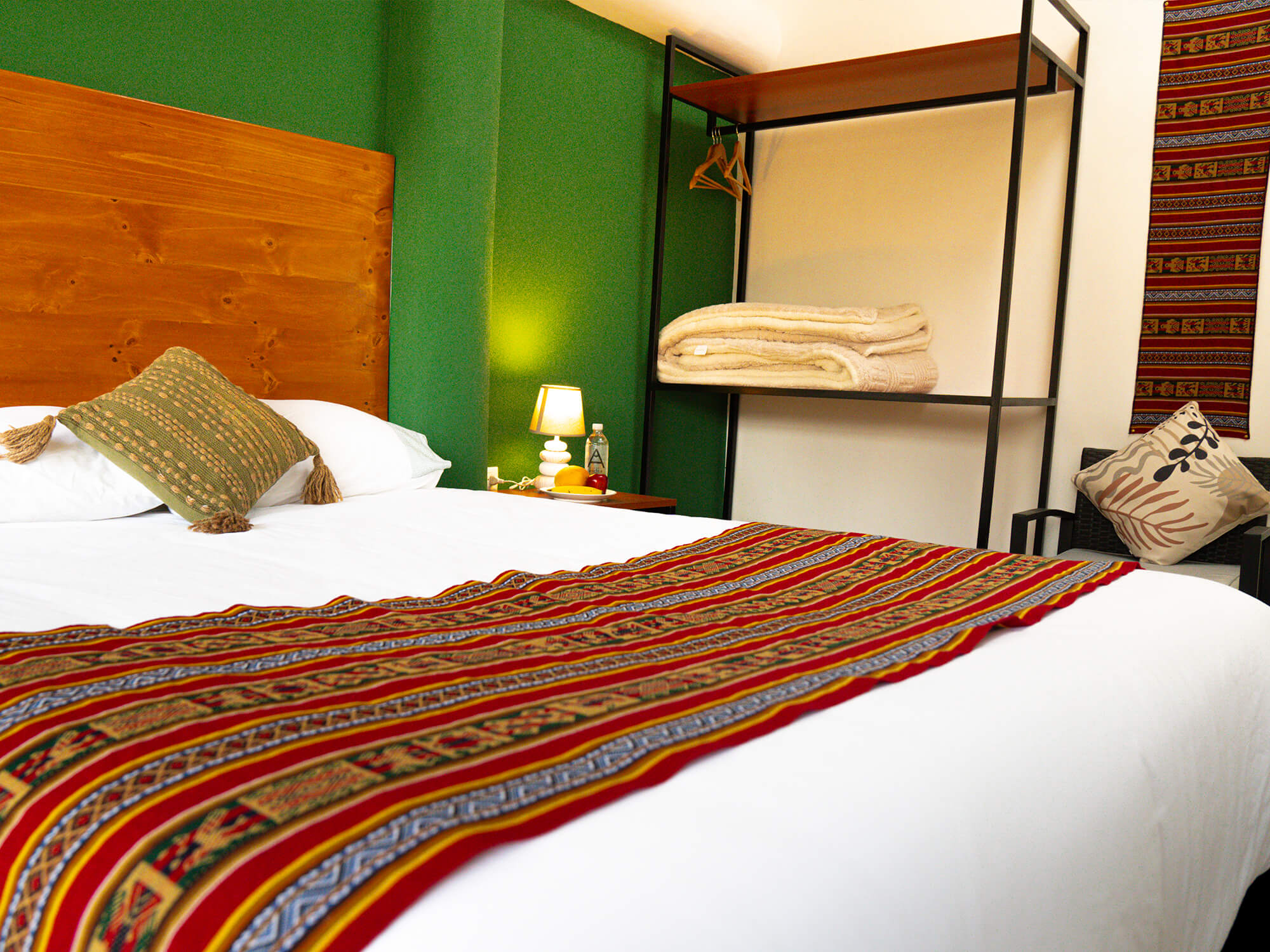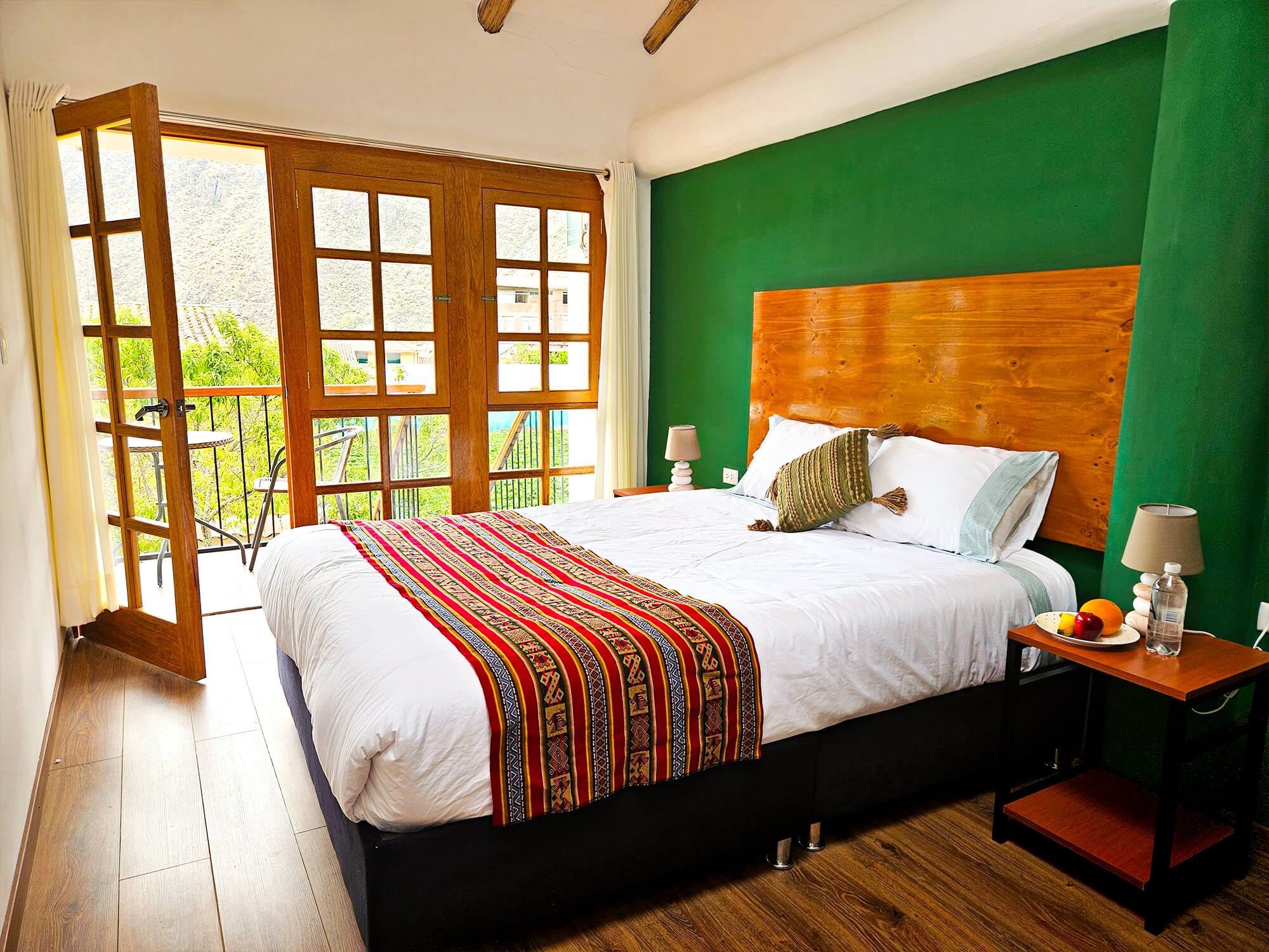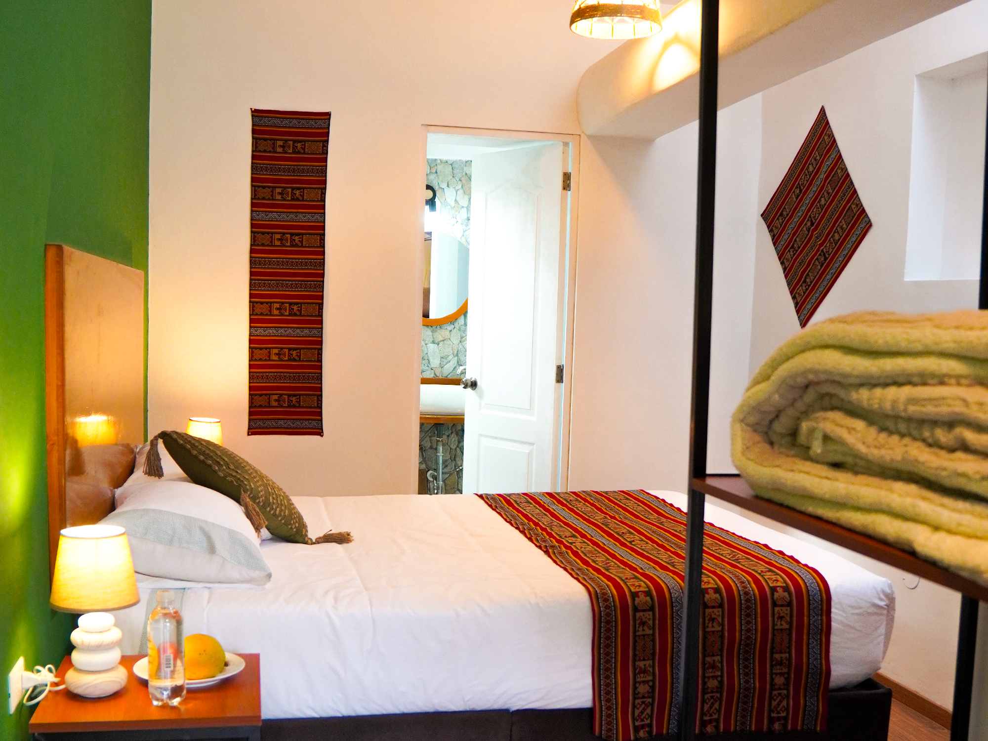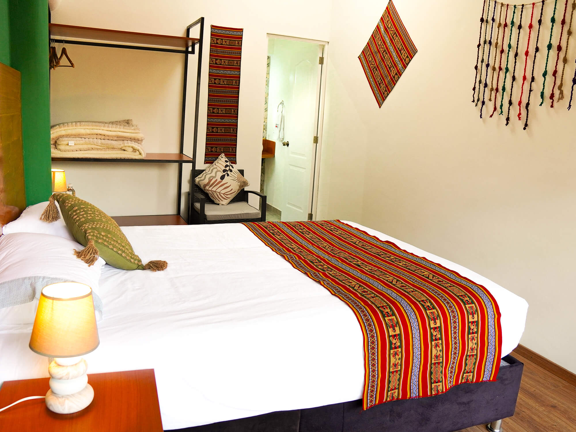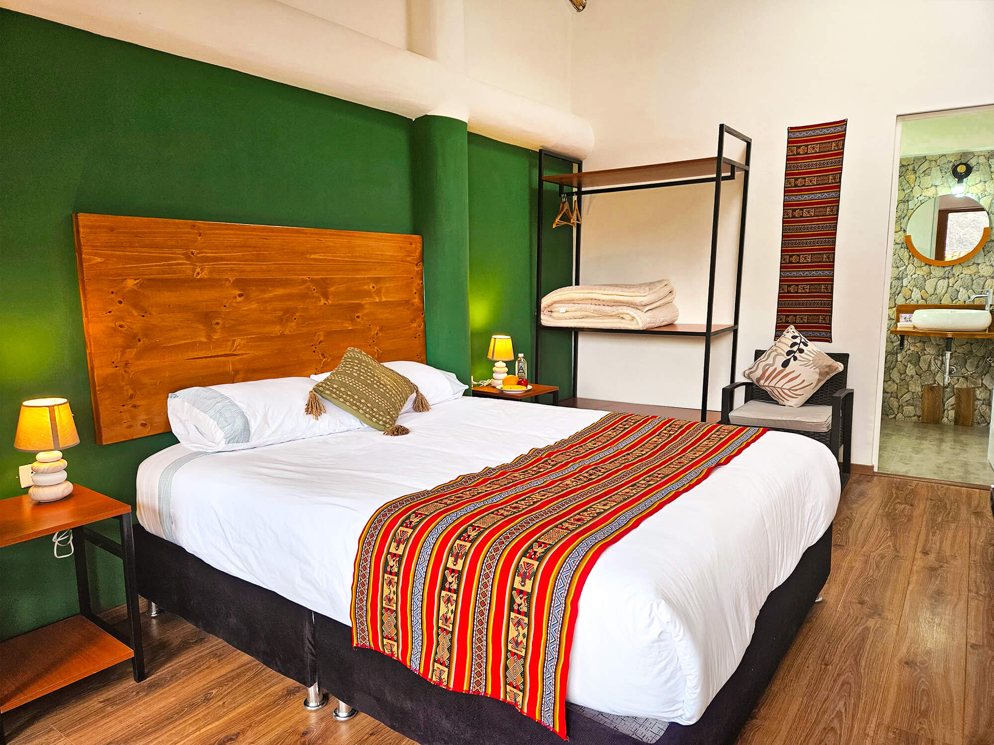 Habitación doble ideal para dos personas, cuenta con vista hacia el valle y está en el segundo piso donde tiene una mesa para disfrutar la vista hacia el valle sagrado de los Incas, dispone de entrada y baño privado, con tina-ducha dentro de la habitación. Se ofrece 1 cama queen, agua caliente, wifi de alta velocidad.