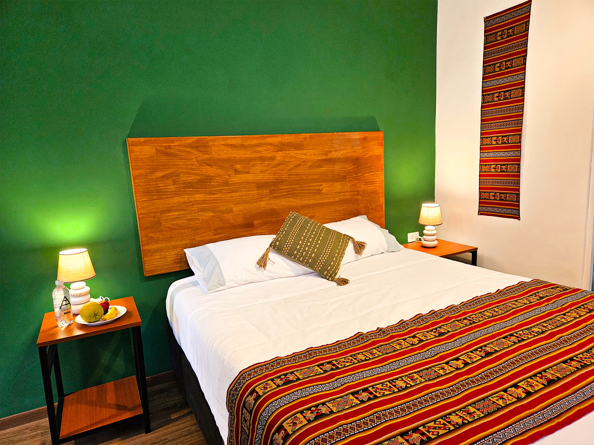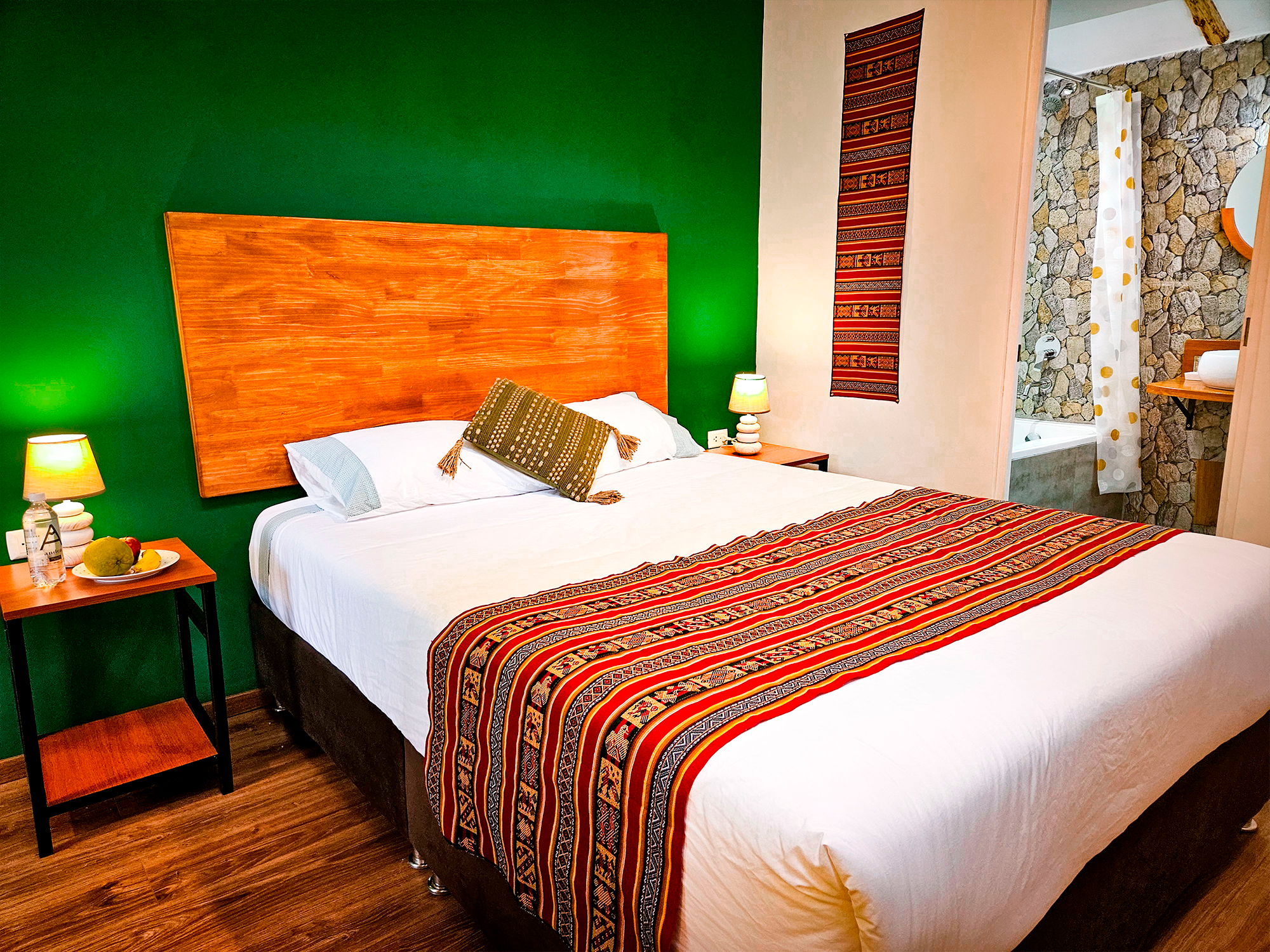 Habitación doble ideal para dos personas. Cuenta con vista hacia el Valle y está ubicada en el segundo piso, posee una terraza con una maravilloza vista hacia el valle sagrado de los Incas. Dispone de entrada privada y baño con tina-ducha dentro de la habitacion. Se ofrece 1 cama queen; ademas cuenta con un acesso interno hacia la sala del primer piso.